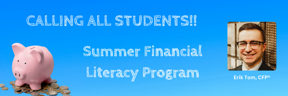 Inspired by the writings of Warren Buffet and a team of Harvard Business School alumni, this new financial acumen course, led by Erik Tom, CFP®, is designed to equip high school and college students with a solid footing of business concepts and investment principles. Join us for this unique 6-week summer program (1 hour each week). No cost to attend, all course materials provided, and completion certificate awarded.